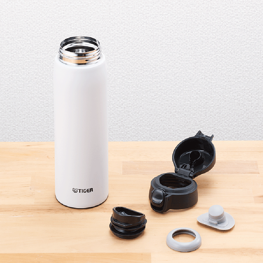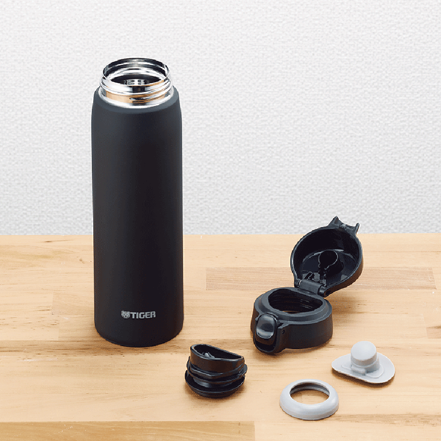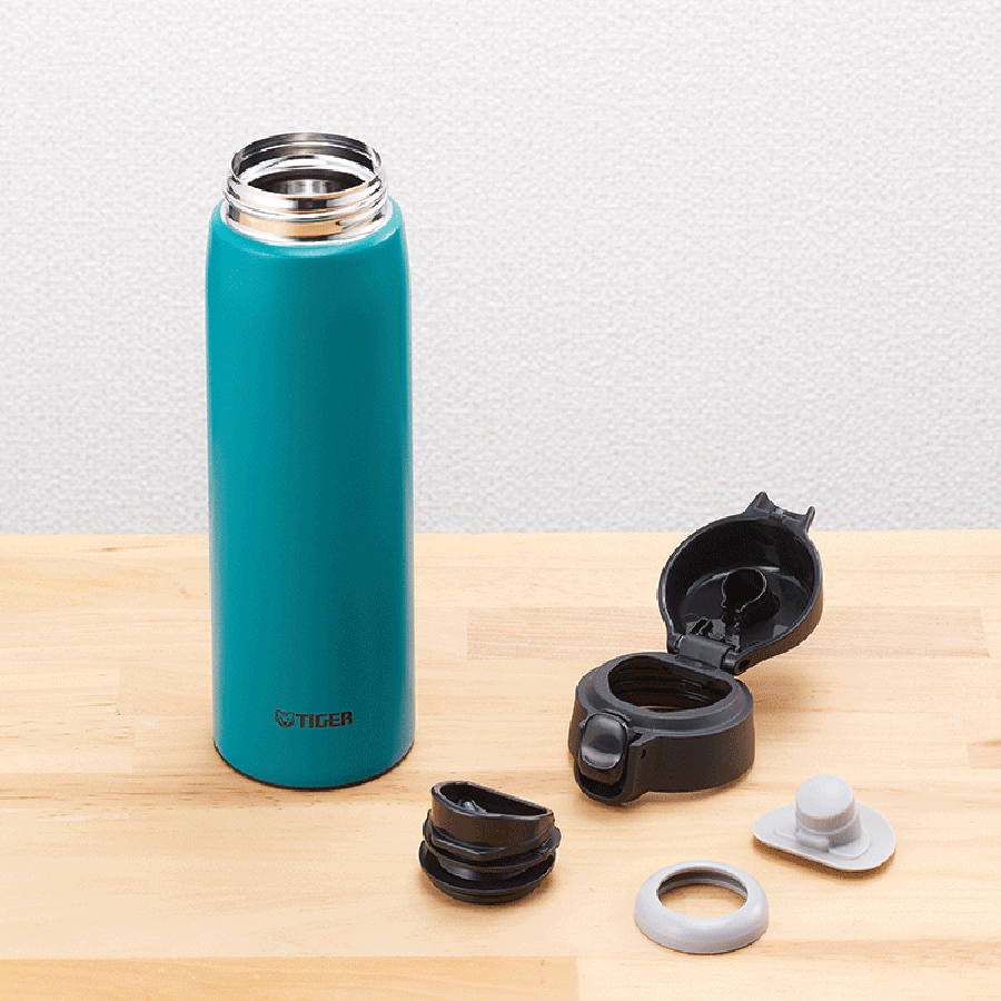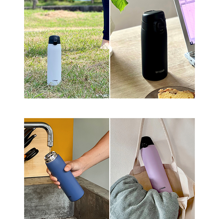 Bình giữ nhiệt cao cấp hiệu Tiger tích hợp chức năng khóa nắp tự động và mở nắp với một nút nhấn “Auto Lock“, giữ nước nóng và lạnh cả ngày với kiểu dáng sang trọng, gọn nhẹ, tiện lợi, dễ dàng bỏ trong balo, túi xách trong những hoạt động thường nhật hay trong những chuyến dã ngoại, thiết kế miệng rộng 4.5 cm dễ dàng bỏ đá viên cũng như vệ sinh, rửa được dưới vòi nước, công nghệ xử lý kháng khuẩn “BIO Guard” cho nắp bình, ron cao su và thân bình đạt chứng nhận “SIAA“, công nghệ “Polishing” chống bám bẩn và khử mùi, đáy bình được làm bằng nhựa chống trượt, có 5 màu: màu xanh Marine, màu xanh Viridian, màu đen nhám, màu tím Lilac & màu trắng khói.