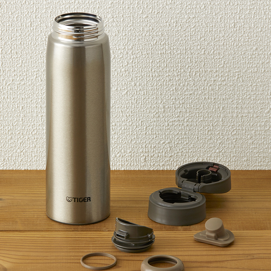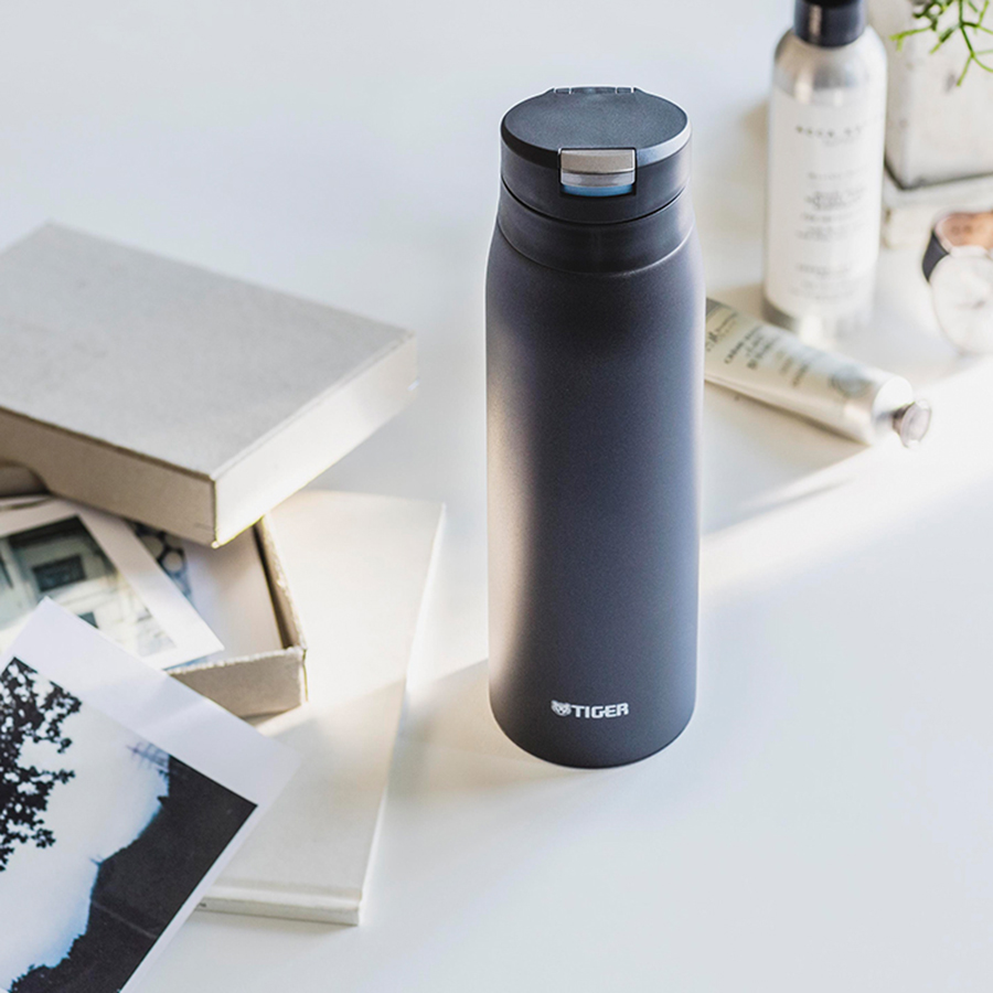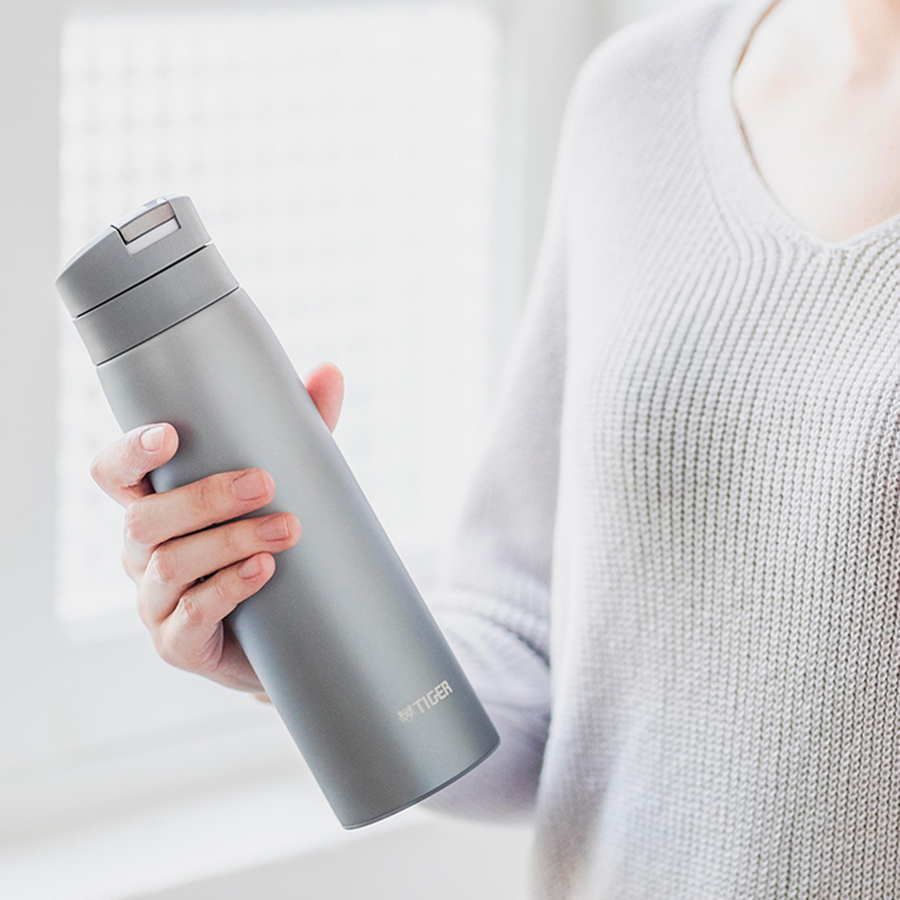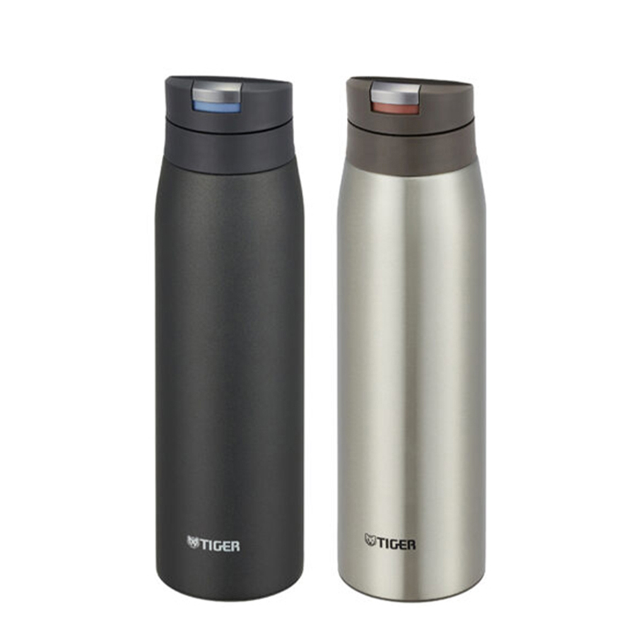 Bình giữ nhiệt cao cấp hiệu Tiger tích hợp chức năng khóa nắp tự động và mở nắp với một nút nhấn “Auto Lock“, giữ nóng giữ lạnh trong nhiều giờ đồng hồ, với kiểu dáng sang trọng, gọn nhẹ, tiện lợi, dễ dàng bỏ trong balo, túi xách trong những hoạt động thường nhật hay trong những chuyến dã ngoại, thiết kế miệng rộng dễ dàng bỏ đá viên cũng như uống trực tiếp và vệ sinh, rửa được dưới vòi nước, công nghệ “Blasting” chống bám bẩn và khử mùi, đáy bình được làm bằng nhựa chống trượt, có 4 màu: màu xám xanh, màu nâu, màu trắng & màu Inox.