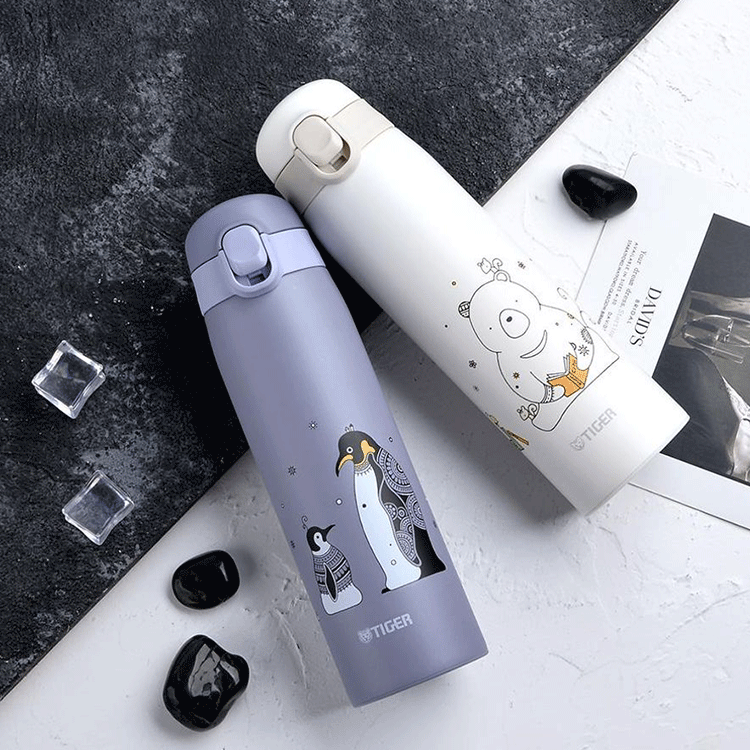 Bình lưỡng tính cao cấp hiệu Tiger đặc biệt dành riêng cho trẻ em với những hình ảnh sinh động được thiết kế bởi đơn vị vẽ minh họa Nhật Bản nổi tiếng “Kameichidou“, tích hợp chức năng khóa nắp tự động và mở nắp bằng một nút nhấn “Auto Lock” cùng với thiết kế thao tác khóa / mở nắp chỉ bằng một tay với 1 nút nhấn ngăn ngừa rò rỉ nước khi bình bị ngã, giữ nóng giữ lạnh trong nhiều giờ đồng hồ, với kiểu dáng sang trọng, gọn nhẹ, tiện lợi, dễ dàng bỏ trong balo, cặp xách khi đi học hay trong những chuyến dã ngoại, thiết kế miệng rộng 4.5 cm dễ dàng bỏ đá viên cũng như uống trực tiếp và vệ sinh, rửa được dưới vòi nước, công nghệ “Blasting” chống bám bẩn và khử mùi, đáy bình được làm bằng nhựa chống trượt, có 2 hình: hình chim cánh cụt & hình gấu.