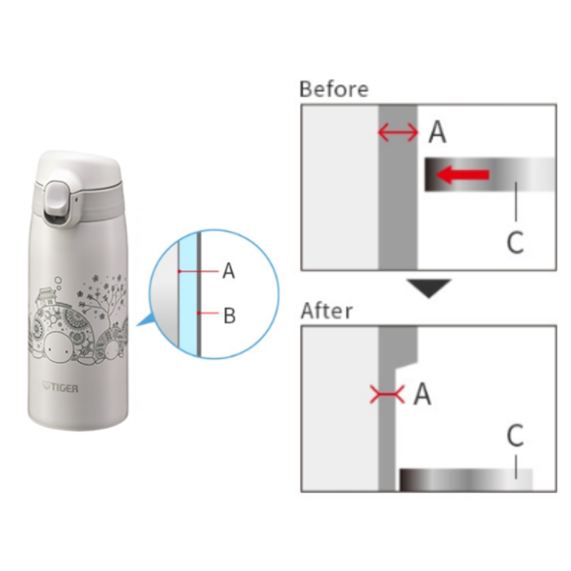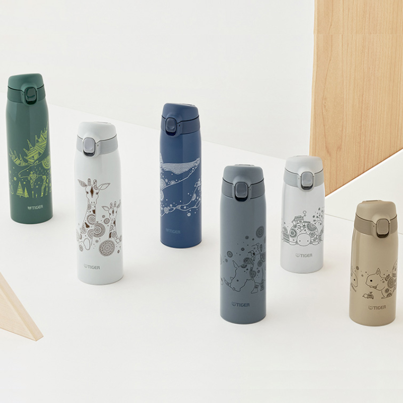 Bình lưỡng tính cao cấp hiệu Tiger đặc biệt dành riêng cho trẻ em với những hình ảnh sinh động được thiết kế bởi đơn vị vẽ minh họa Nhật Bản nổi tiếng “Kameichidou“, tích hợp chức năng khóa nắp tự động và mở nắp bằng một nút nhấn “Auto Lock” cùng với thiết kế thao tác khóa / mở nắp chỉ bằng một tay với 1 nút nhấn ngăn ngừa rò rỉ nước khi bình bị ngã, giữ nóng giữ lạnh trong nhiều giờ đồng hồ, với kiểu dáng sang trọng, gọn nhẹ, tiện lợi, dễ dàng bỏ trong balo, cặp xách khi đi học hay trong những chuyến dã ngoại, thiết kế miệng rộng 4.5 cm dễ dàng bỏ đá viên cũng như uống trực tiếp và vệ sinh, rửa được dưới vòi nước, công nghệ “Blasting” chống bám bẩn và khử mùi, đáy bình được làm bằng nhựa chống trượt, có 2 hình: hình rùa và hình sóc.
