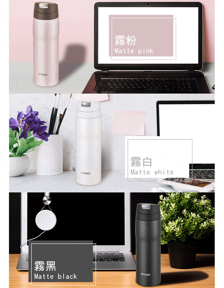 Bình lưỡng tính cao cấp hiệu Tiger có tích hợp chức năng khóa nắp tự động và mở nắp với một nút nhấn “Auto Lock“, giữ nóng giữ lạnh trong nhiều giờ đồng hồ, với kiểu dáng sang trọng, gọn nhẹ, tiện lợi, dễ dàng bỏ trong balo, túi xách trong những hoạt động thường nhật hay trong những chuyến dã ngoại, thiết kế miệng rộng đến 5.5cm dễ dàng bỏ đá viên cũng như uống trực tiếp và vệ sinh, rửa được dưới vòi nước, công nghệ “Super Clean Plus” chống bám bẩn và khử mùi, có 3 màu: màu trắng khói, màu đen carbon & màu hồng hoa anh đào.